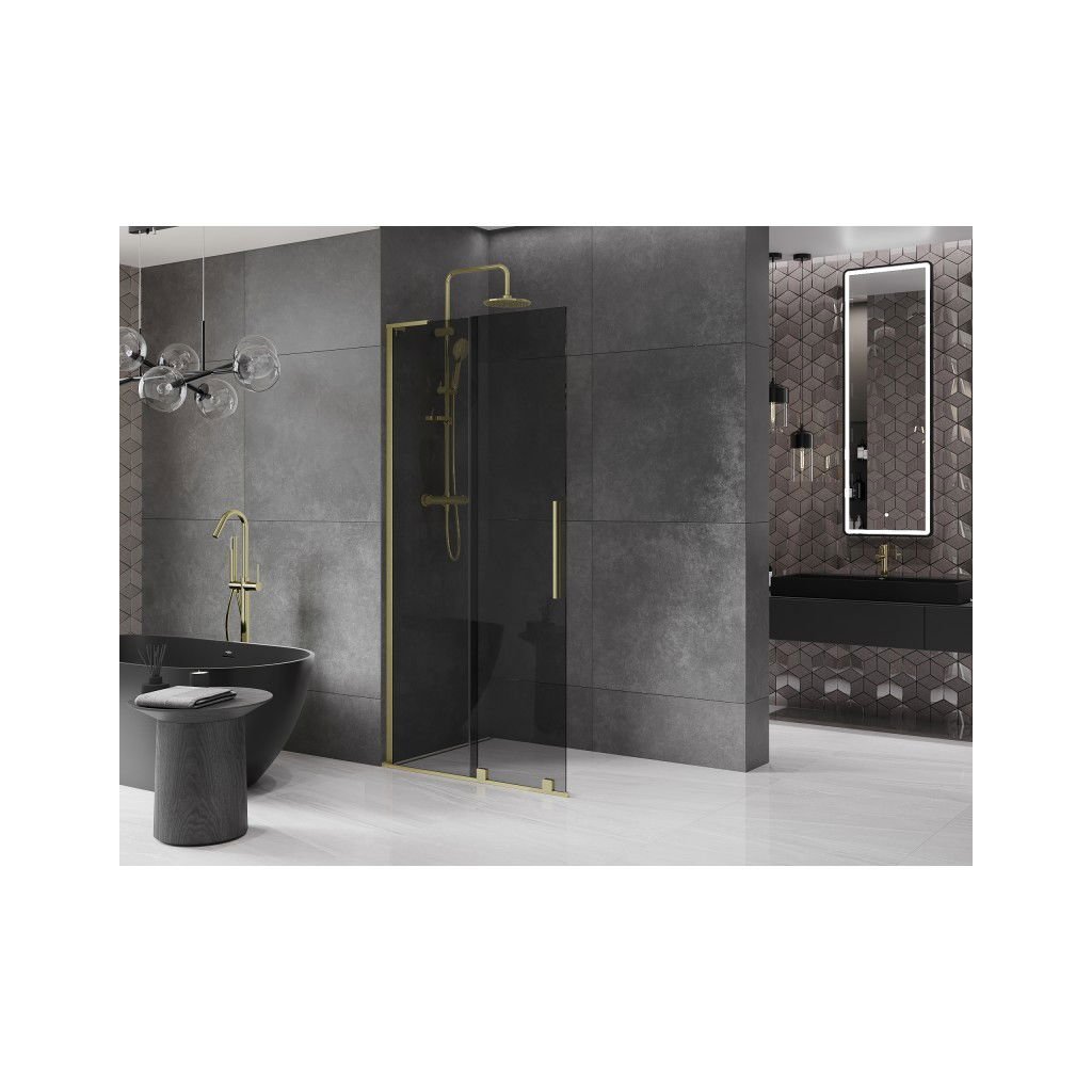 Mexen Velar L, paravan de duș glisant Walk-in 120 x 200 cm, sticlă gri 8 mm, auriu mat, 871-120-003-43-55