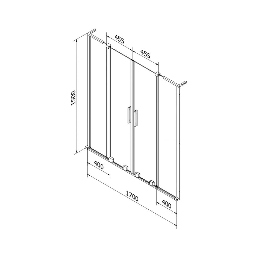 Mexen Velar L Duo, paravan de baie glisant cu 2 aripi 170 x 150 cm, sticlă transparentă de 8 mm, auriu strălucitor, 896-170-003-02-50