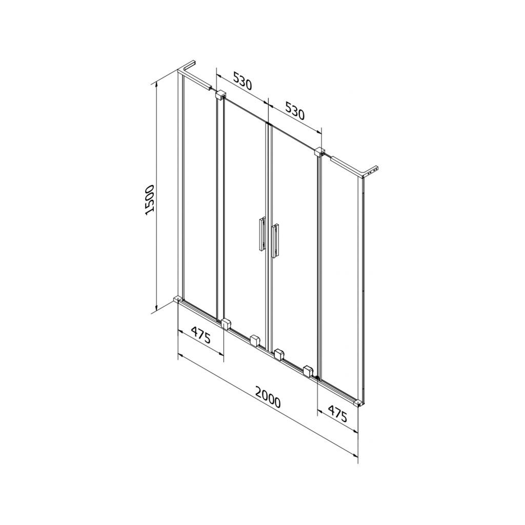 Mexen Velar L Duo, paravan de baie glisant cu 2 aripi 200 x 150 cm, sticlă transparentă de 8 mm, cupru mat, 896-200-003-02-65