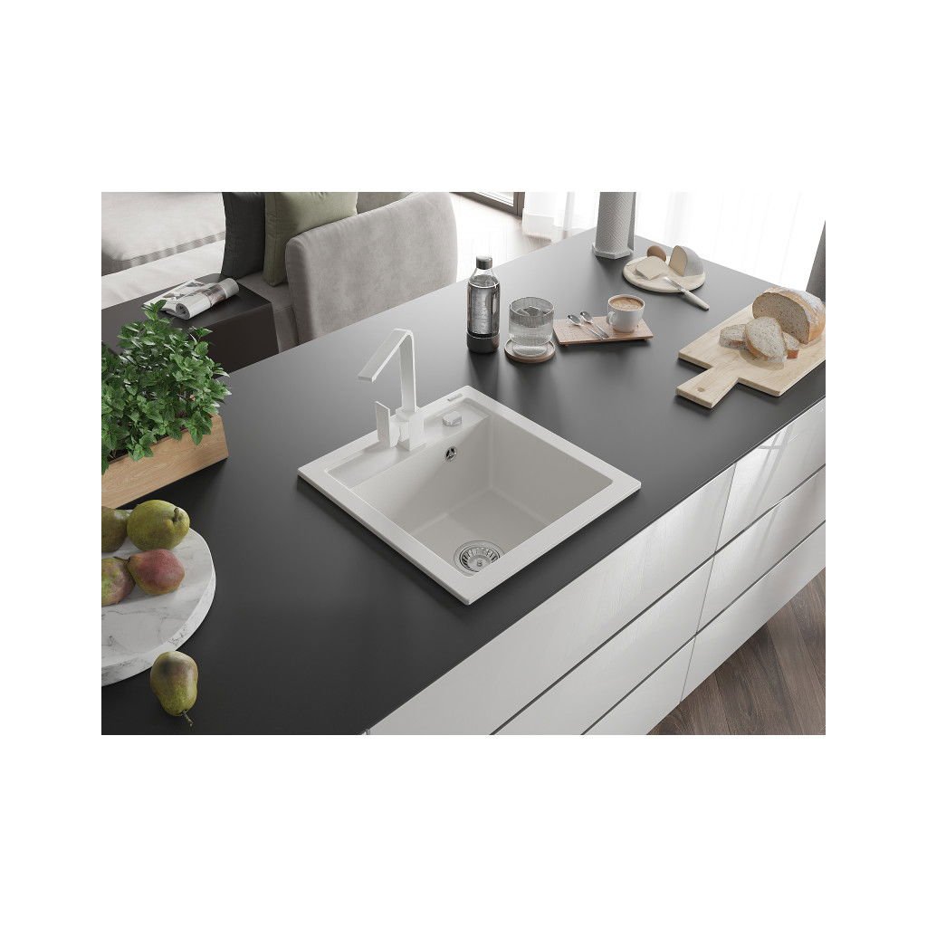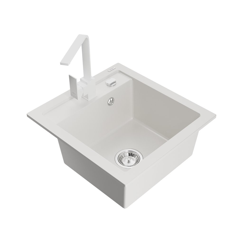 Mexen Vito, chiuveta granit 1 camera 520x490x210 mm, baterie alb Rita, alb, 6503-20-670300-20