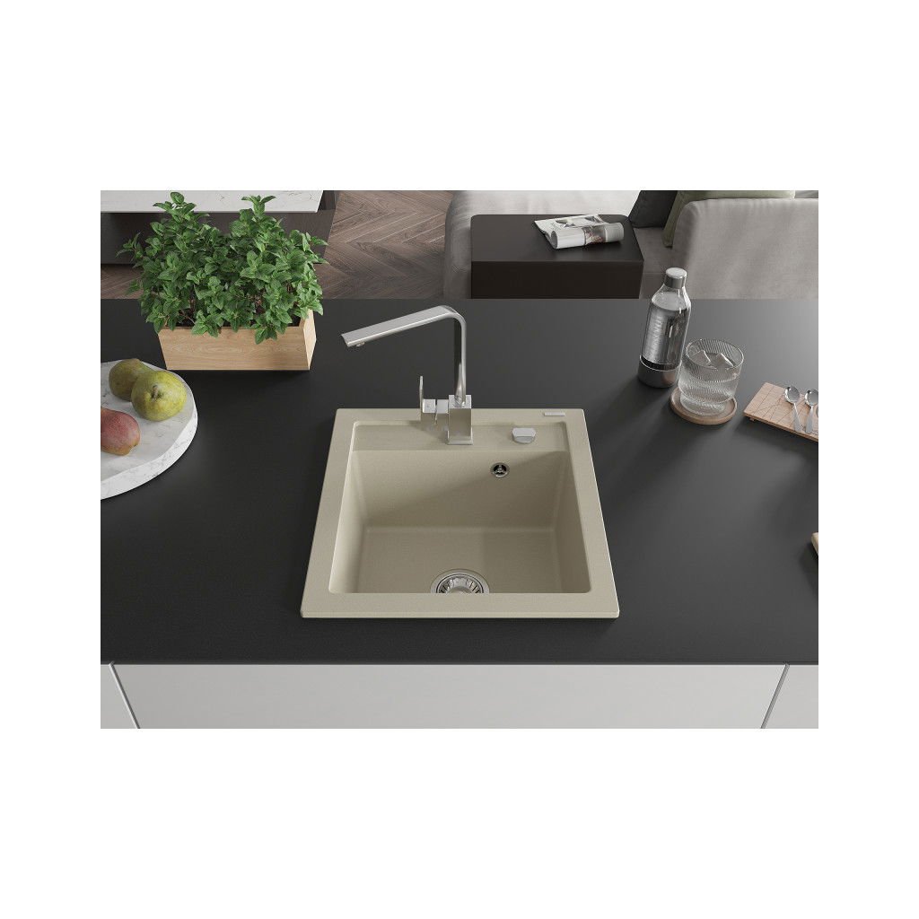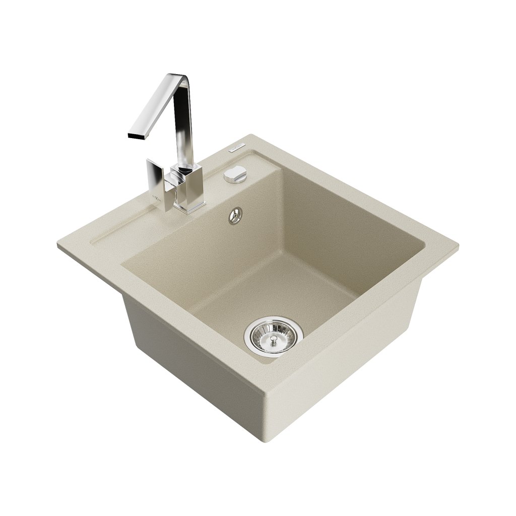 Mexen Vito, chiuveta granit 1 camera 520x490x210 mm, baterie cromata Rita, bej, 6503-69-670300-00