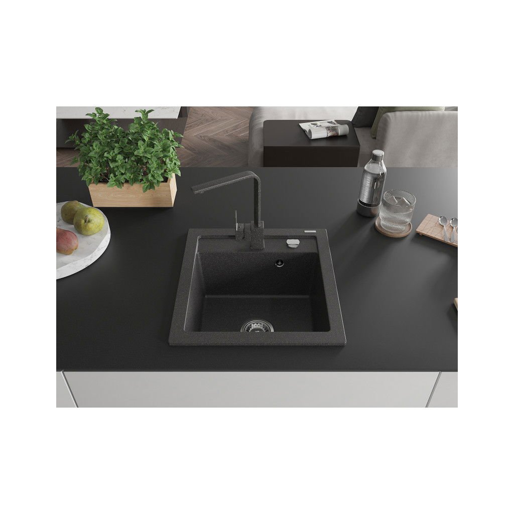 Mexen Vito, chiuveta granit 1 camera 520x490x210 mm, robinet cu pete negre Rita, pete negre, 6503-76-670300-76