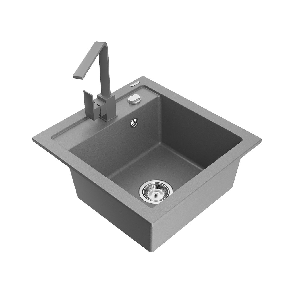 Mexen Vito, chiuveta granit 1 camera 520x490x210 mm, robinet gri Rita, gri, 6503-71-670300-71