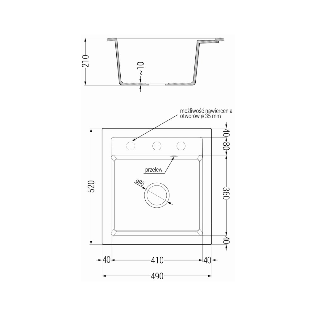 - Orificiu de scurgere: 3,5”; fi = 90 mm