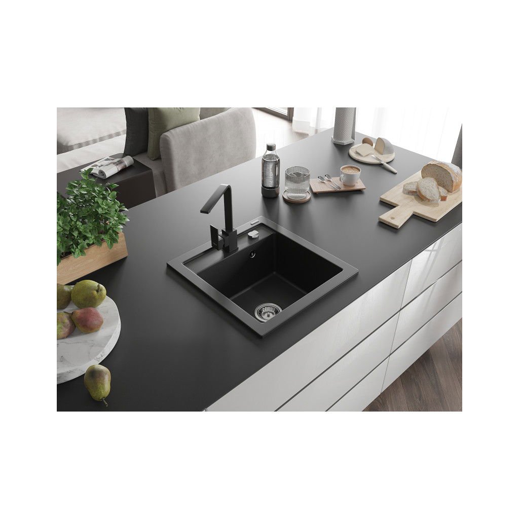 Mexen Vito, chiuveta granit 1 camera 520x490x210 mm, robinet negru Rita, negru, 6503-77-670300-70