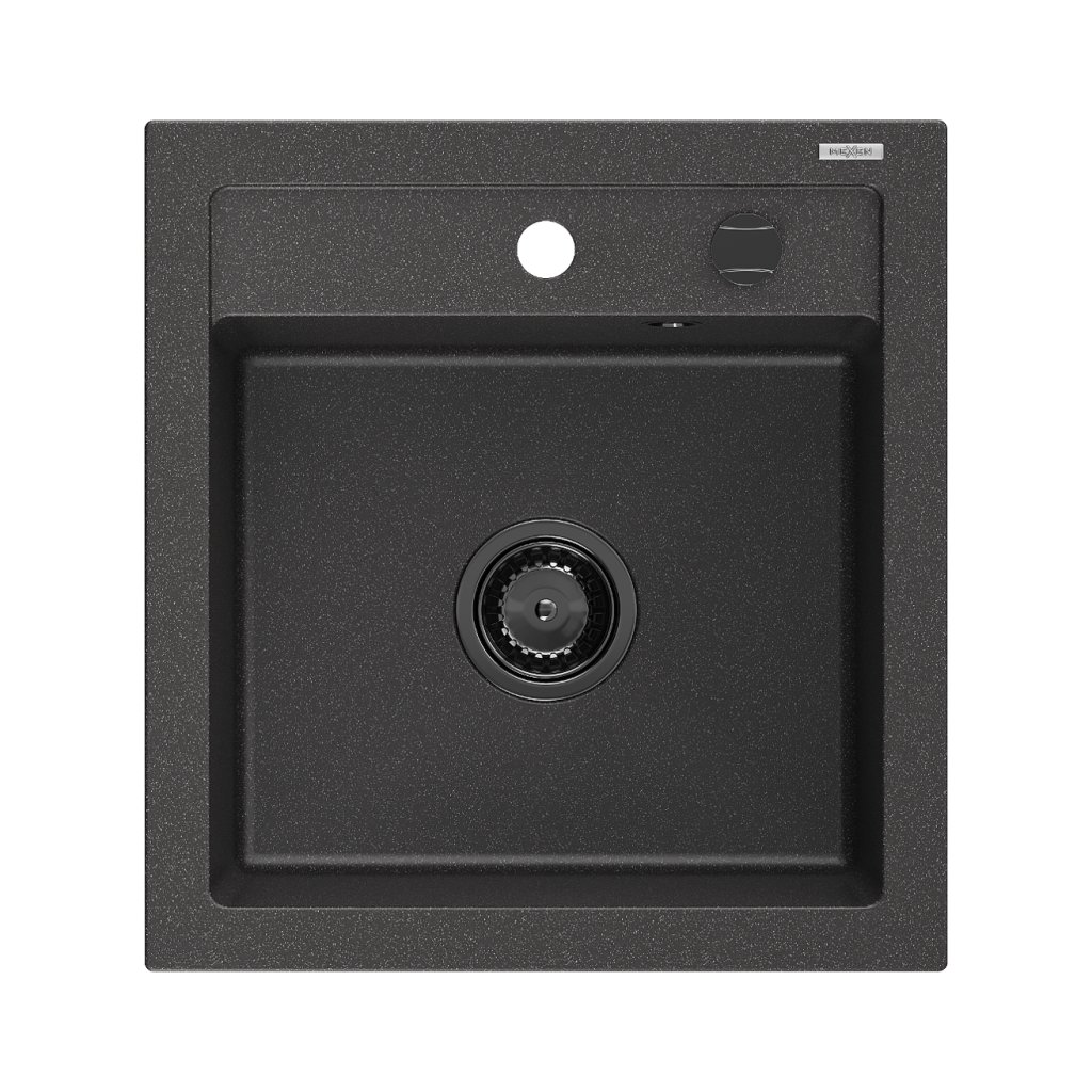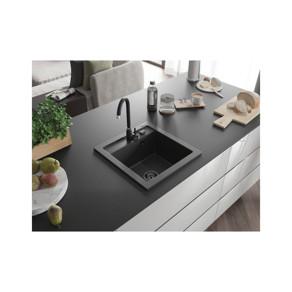 Mexen Vito, chiuveta granit 520x490x210 mm, 1 camera, pete negre cu sifon negru, 6503521000-76-B