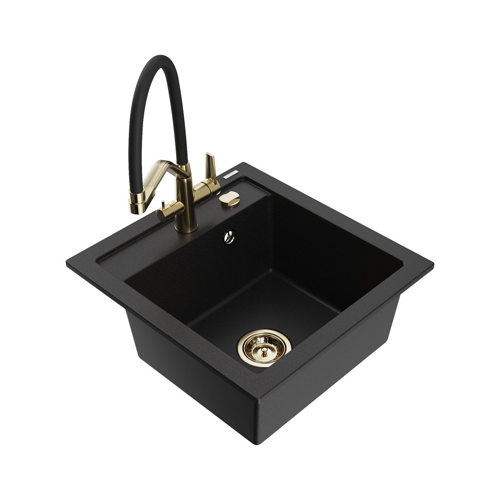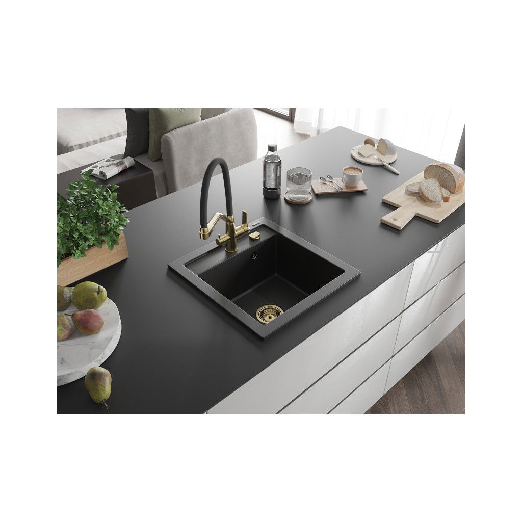 Mexen Vito, chiuveta granit cu 1 camera 520x490x210 mm, baterie chiuveta Duo, negru, 6503-77-671701-57-G
