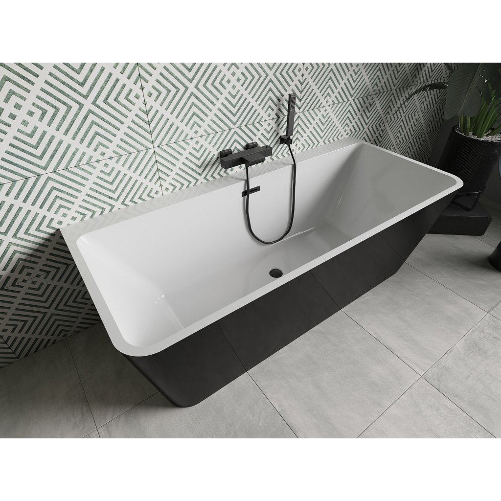 Mexen Volta, cadă de sine stătătoare montată pe perete 170 x 75 cm + dop de scurgere negru și orificiu de preaplin, negru - alb, 51131707575-B