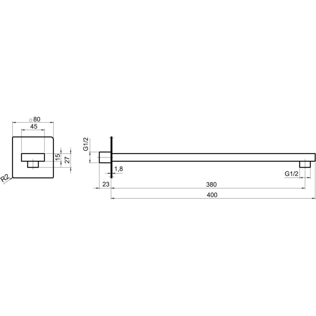 Braț de duș fix pentru instalare ascunsă. Lungimea brațului este de 400 mm.Parametri suplimentari