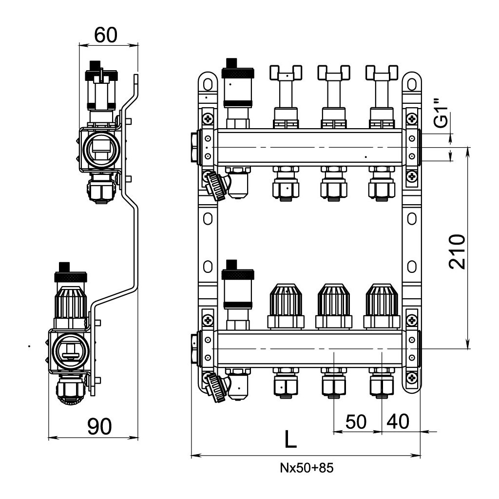 Distribuitor cu robinete de închidere și fiting de reglare cu debitmetre pentru încălzire în pardoseală, racord G1", ieșire cu racord de compresie AL-PEX G1/2", care este inclus în pachet. Distribuitorul poate fi suplimentat cu un ansamblu de pompă GM40GPA și robinete cu bilă JY118/25 . Accesoriile distribuitorului pot fi găsite în secțiunea Accesorii distribuitori . Puteți găsi un tabel cu dulapuri potrivite în imaginea produsuluiParametri suplimentari