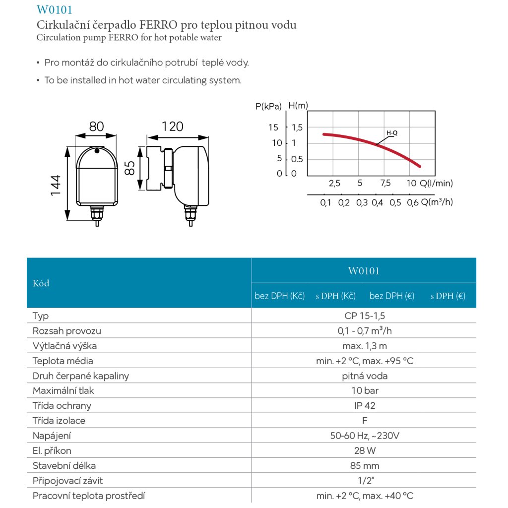 Pentru instalare în conducta de circulație a apei calde. Domeniu de funcționare 0,1 - 0,7 m3/h Înălțime de descărcare 1,3 m Presiune maximă 1MPa El. consum de energie 28 W Lungime construcție 85 mm Filet de conectare 1/2"Parametri suplimentari