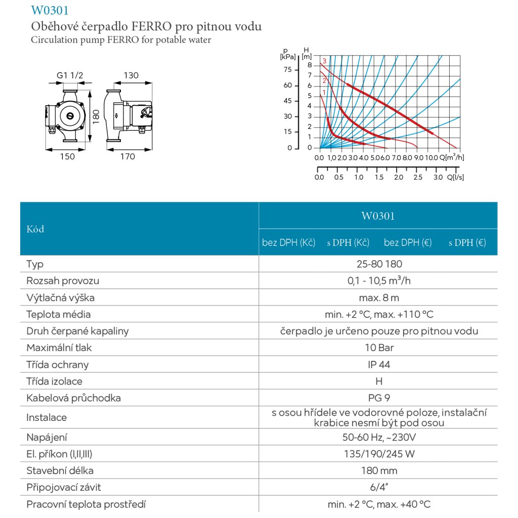 Novaservis, pompa de circulatie FERRO pentru apa potabila, W0301