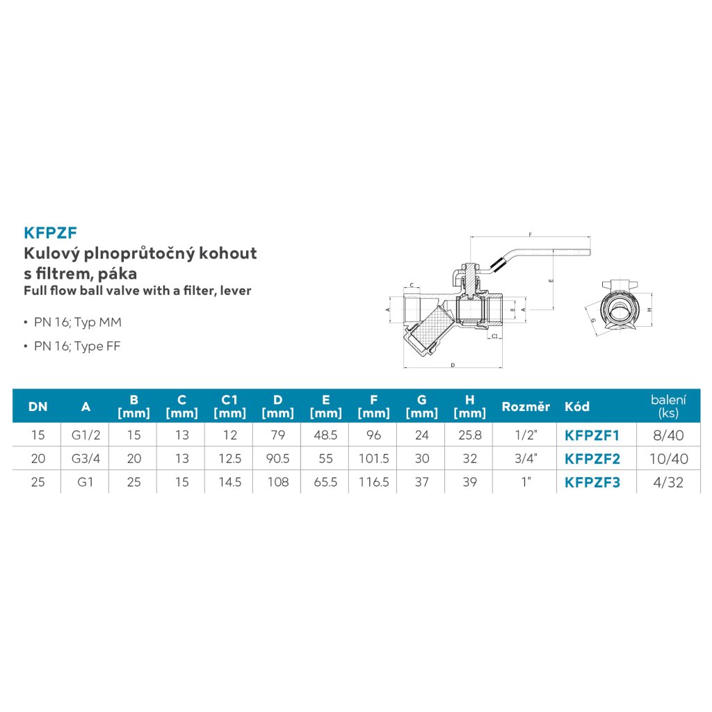 Novaservis, robinet cu bilă flux complet cu filtru, pârghie MM 5/4", KFPZF4