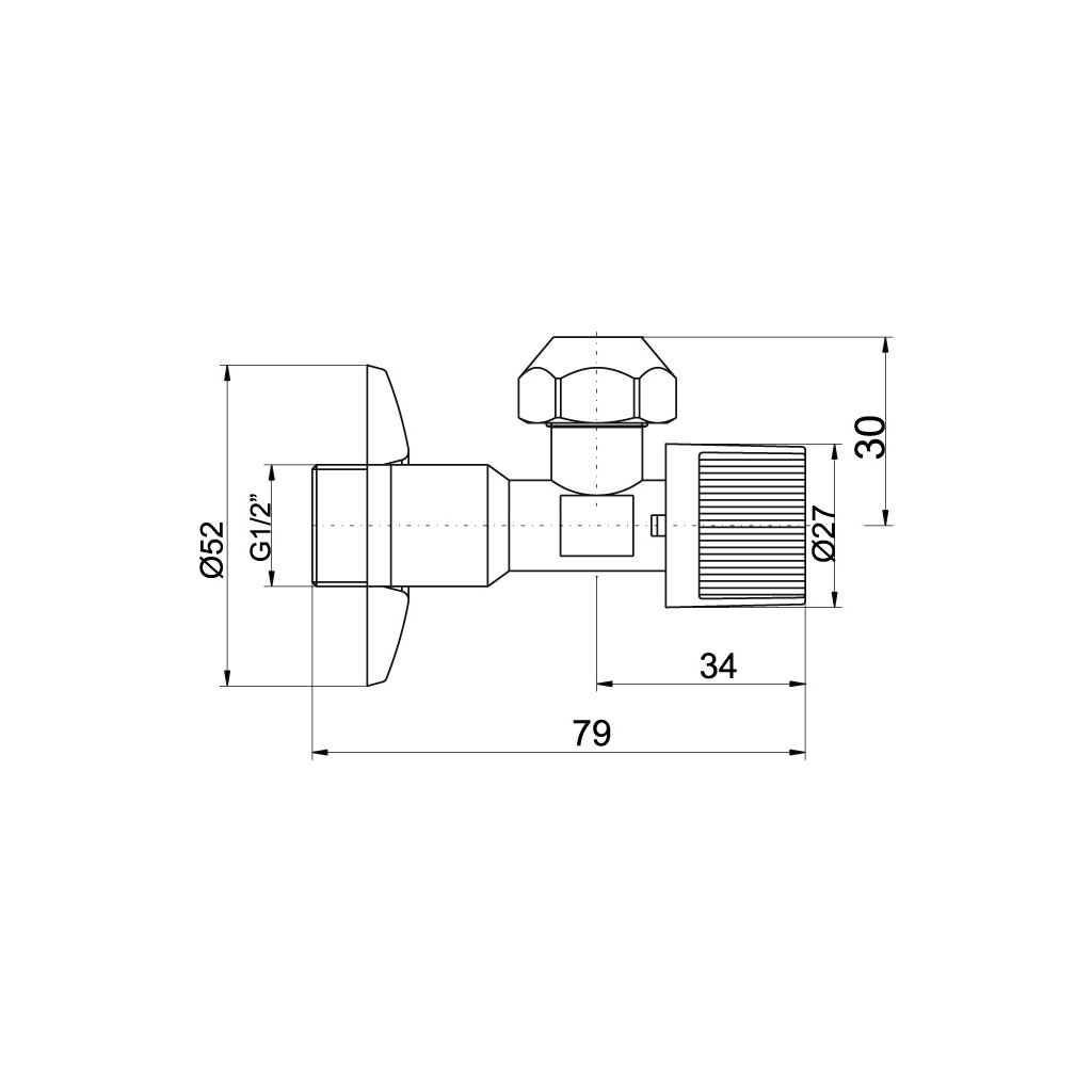Novaservis, Supapă de colț fără filtru 1/2"x 3/8" cu piuliță, CF3003/10M