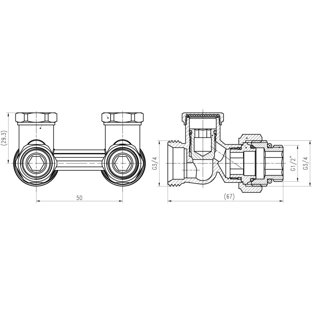 Supapă de închidere a radiatorului dublu drept 3/4"Parametri suplimentari