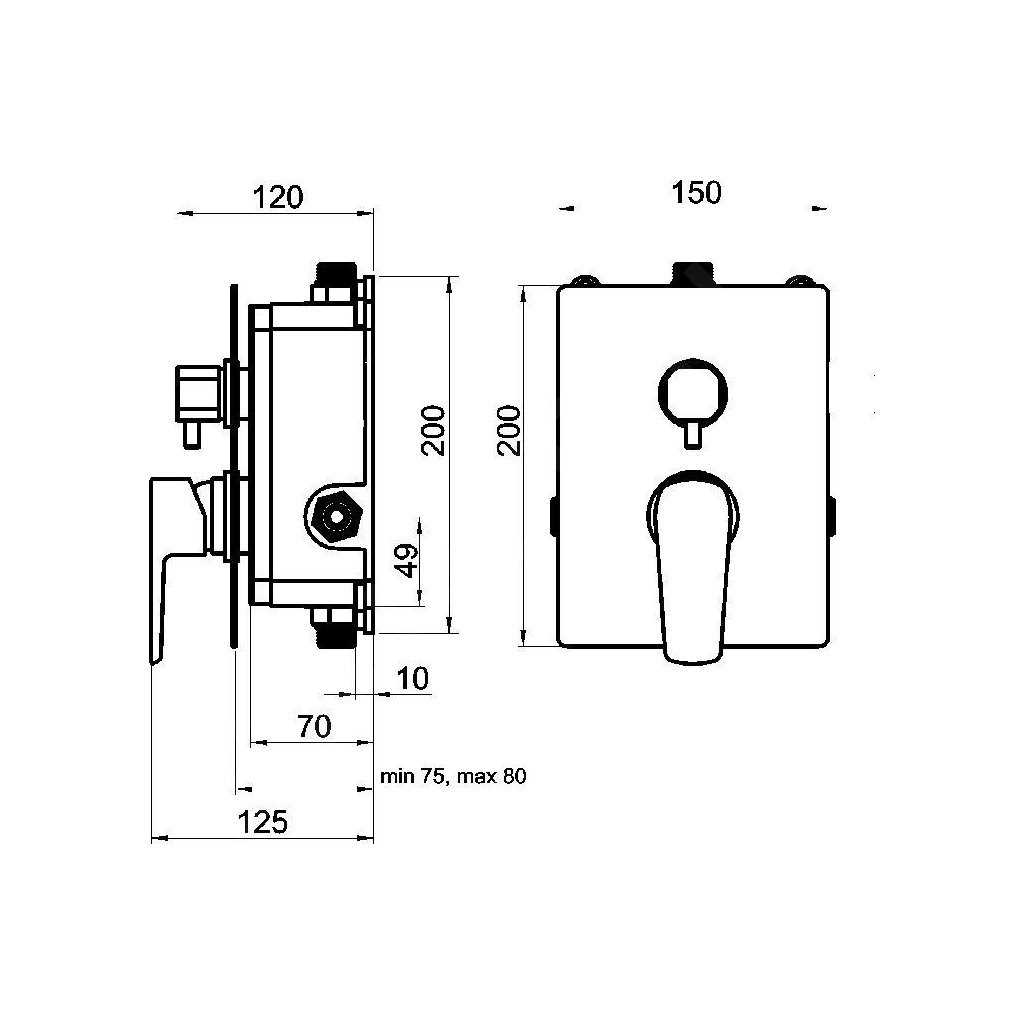 Novaservis Metalia 58, baterie ascunsă cu cutie 2 ieșiri, negru mat, BOX58051R-5