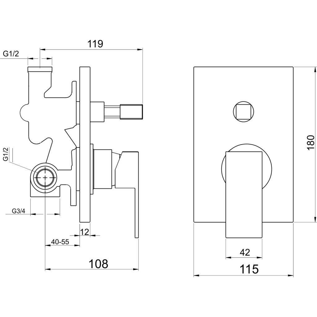 Cartuș ceramic de înaltă calitate și durabil 35 mm cu o garanție de 5 ani . Finisaj cromat de primă clasă. Baterie pentru cadă și duș ascunsă cu întrerupător de blocare și 2 prize. Bateria include o conexiune de 1/2" montată încastrat.