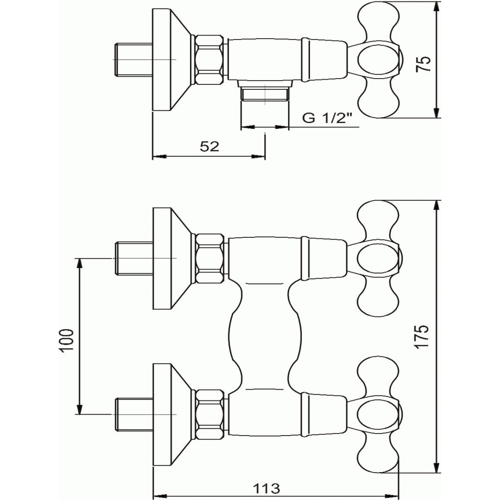 Novaservis Retro II, baterie de duș fără accesorii 100 mm, crom, 99164/1.0