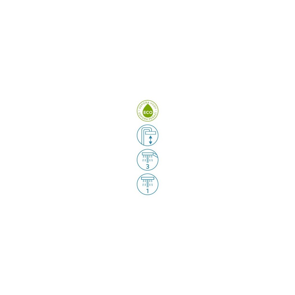 Finisaj cromat de primă clasă. Setul include o baterie termostatica cu o distanta de 150 mm. Pachetul include o cabină de duș SLIM DESIGN cu diametrul de 250 mm, un furtun metalic de 150 cm și un duș de mână cu 1 poziție. Inaltimea reglabila a setului este de 890 - 1300 mm.