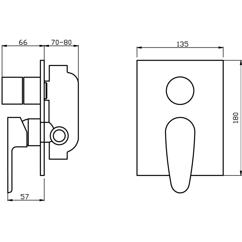 Cartuș ceramic de înaltă calitate și durabil 35 mm , cu o garanție de 5 ani . Finisaj cromat de primă clasă. Baterie pentru cadă și duș ascunsă cu întrerupător de blocare și 2 prize. Bateria include o conexiune de 1/2" montată încastrat.