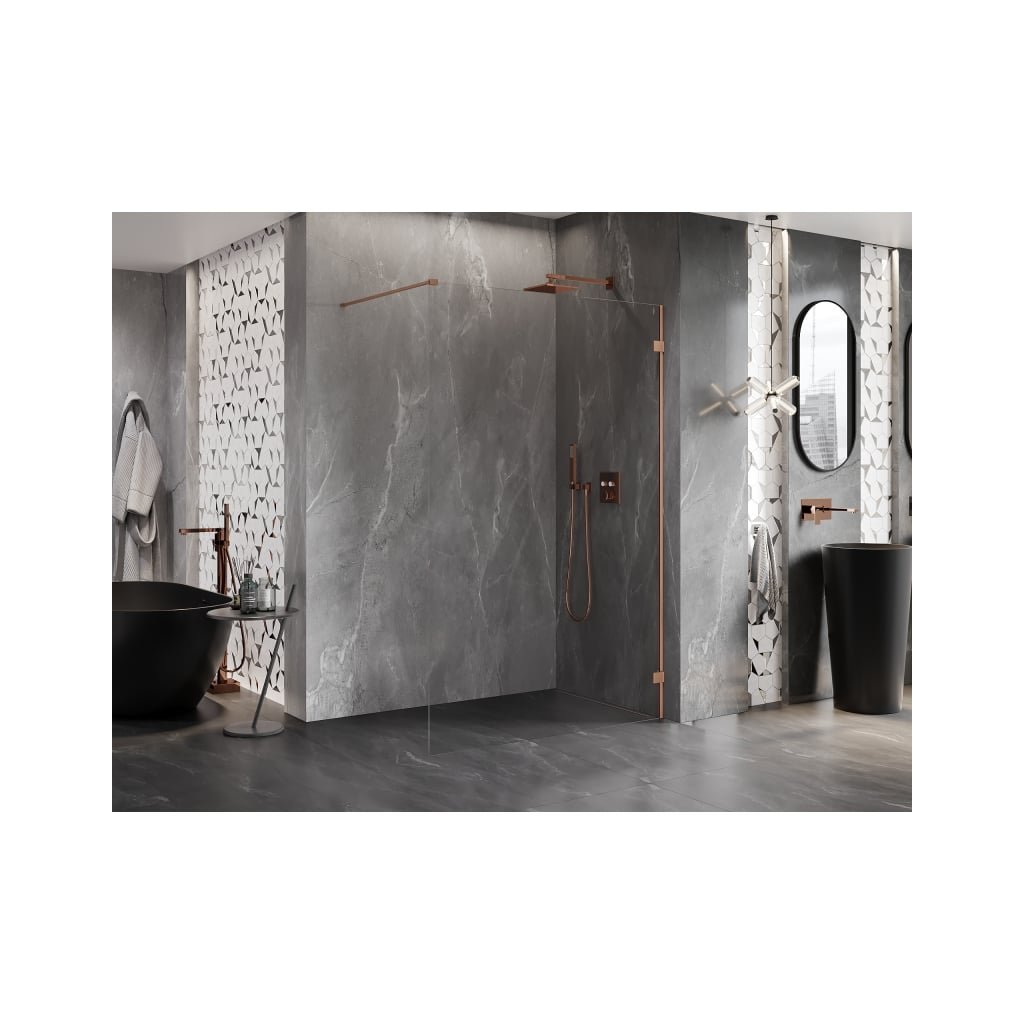 Paravan de dus Mexen Lunar dreapta 100 x 200 cm, sticla transparenta 8 mm, cupru mat, 830-100-000-65-00-P
