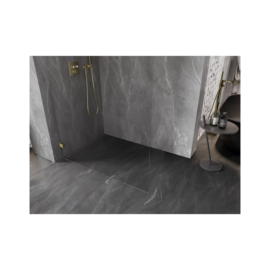 Paravan de duș Mexen Lunar stânga 80 x 200 cm, sticlă transparentă 8 mm, auriu strălucitor, 830-080-000-50-00-L