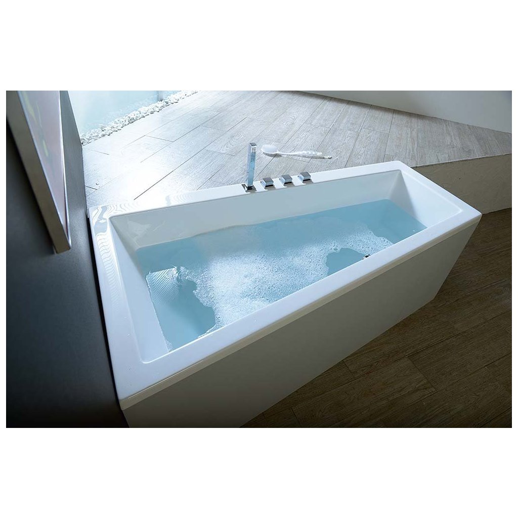 ANDRA este o cadă frumoasă cu linii ascuțite. Lățimea de 60 cm în zona picioarelor și 90 cm în zona spatelui oferă o soluție ideală pentru spațiile înghesuite menținând în același timp o baie confortabilă. Marginea extinsă a căzii de-a lungul peretelui încurajează instalarea unui robinet integrat pentru cadă. Datorita formei, cada poate fi usor captusita cu zidarie clasica