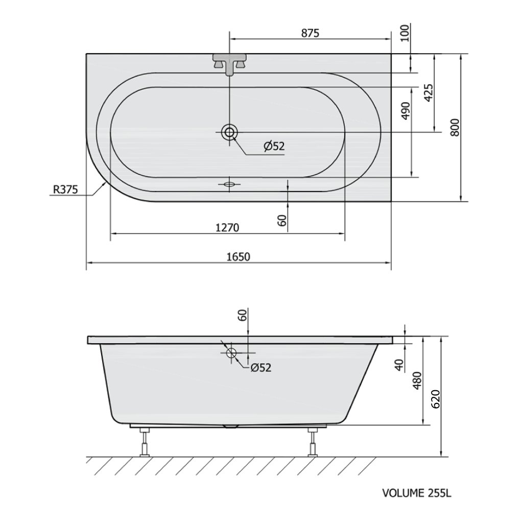 Polysan, cadă asimetrică ASTRA R 165x80x48cm, alb, 34611