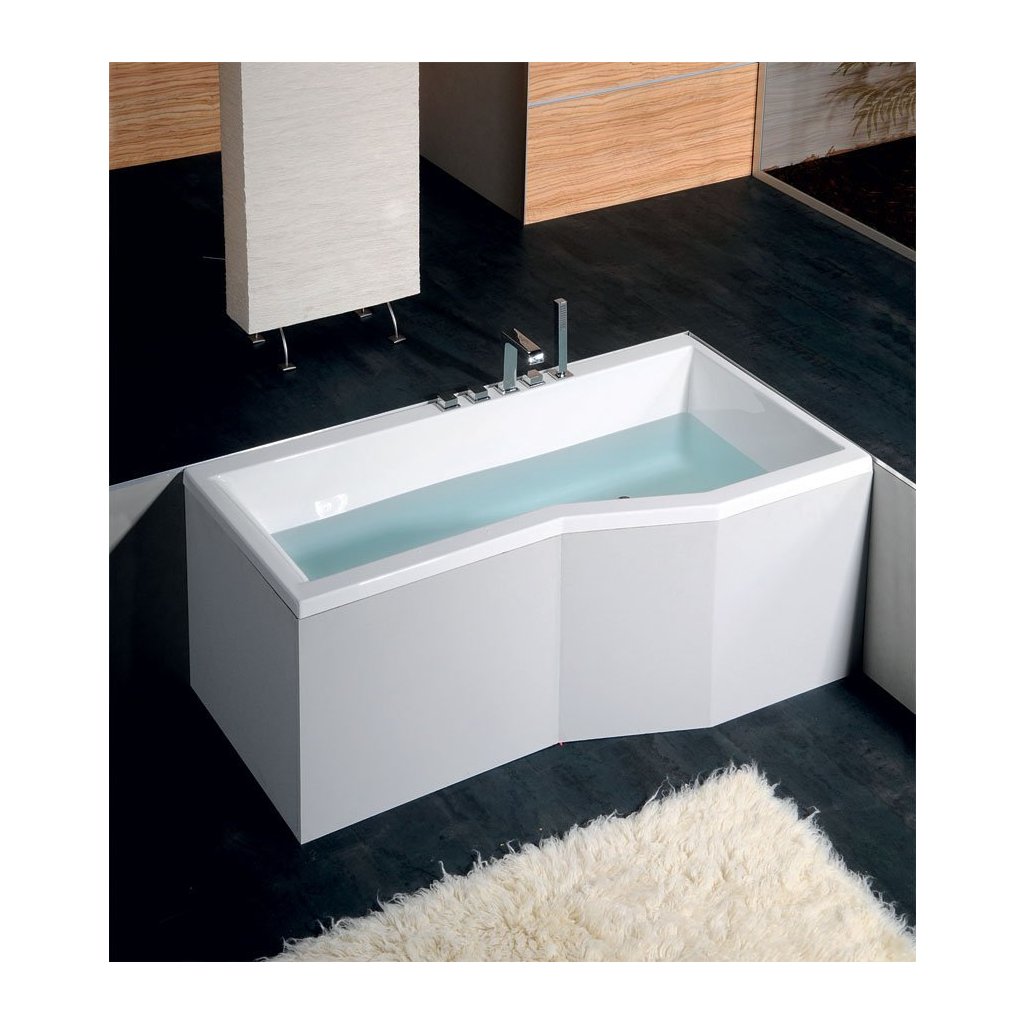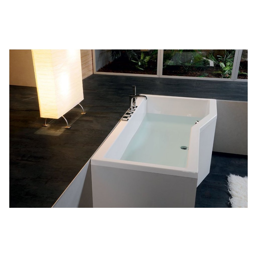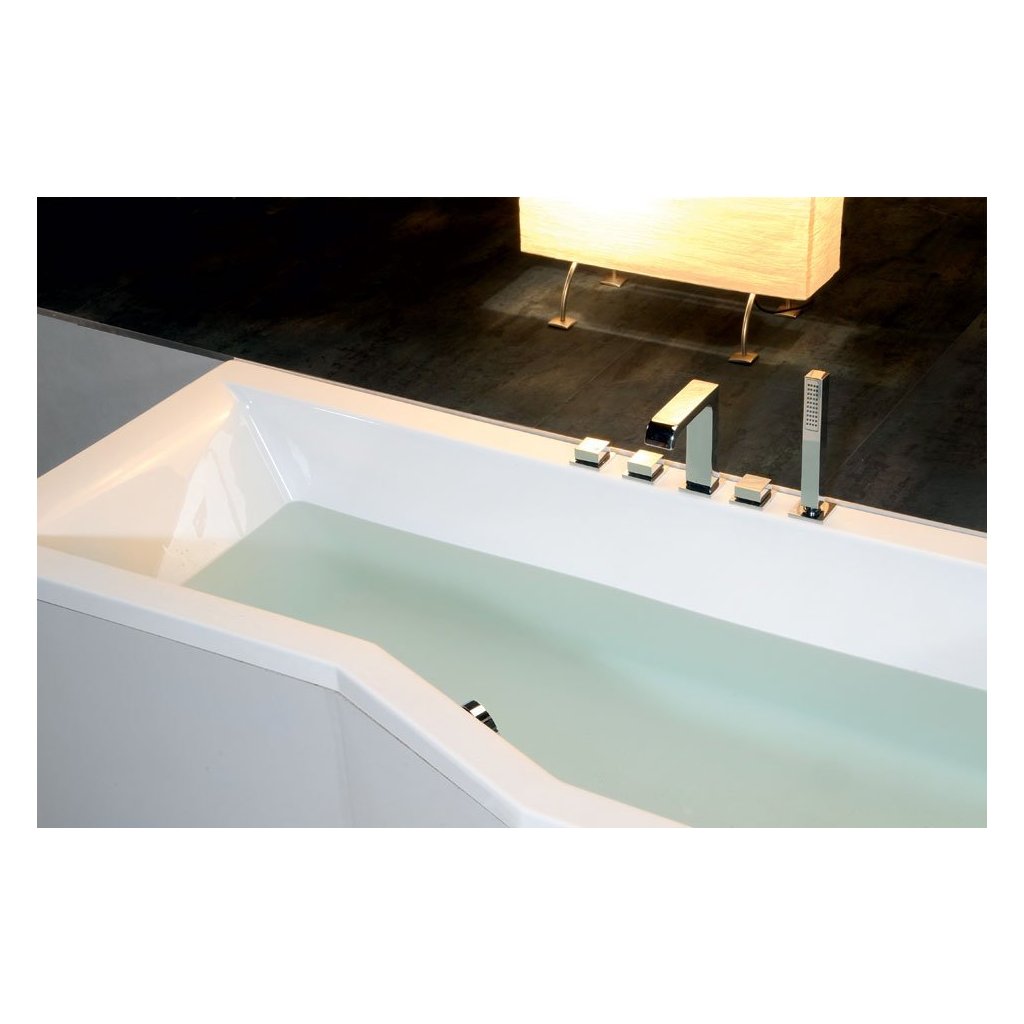 Marginea îngustată din partea frontală a căzii este potrivită pentru amplasarea unui robinet montat pe perete. Este posibil să se monteze majoritatea componentelor pe marginea plată a căzii, atât pentru umplere, cât și eventual pentru controlul sistemului de hidromasaj.