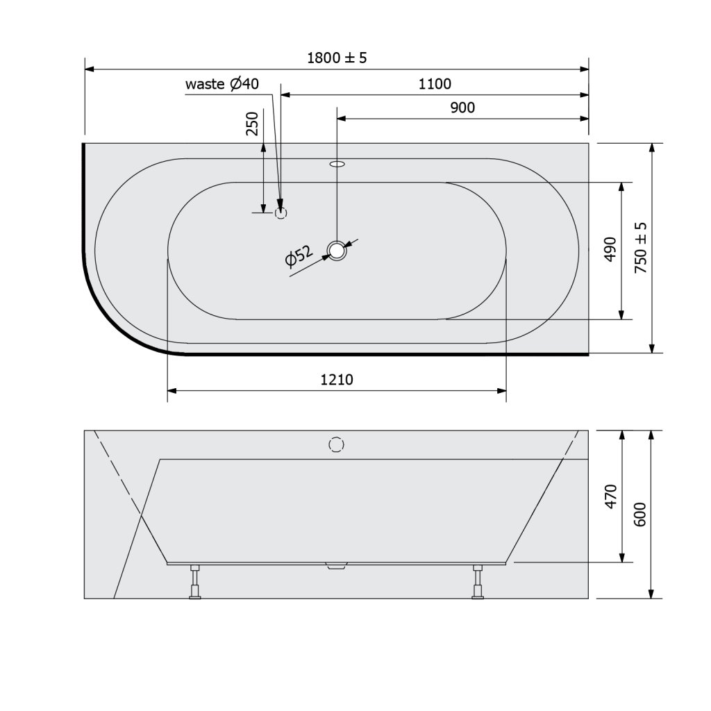 Polysan, cadă asimetrică VIVA R MONOLITH 180x75x60cm, alb, 72129M