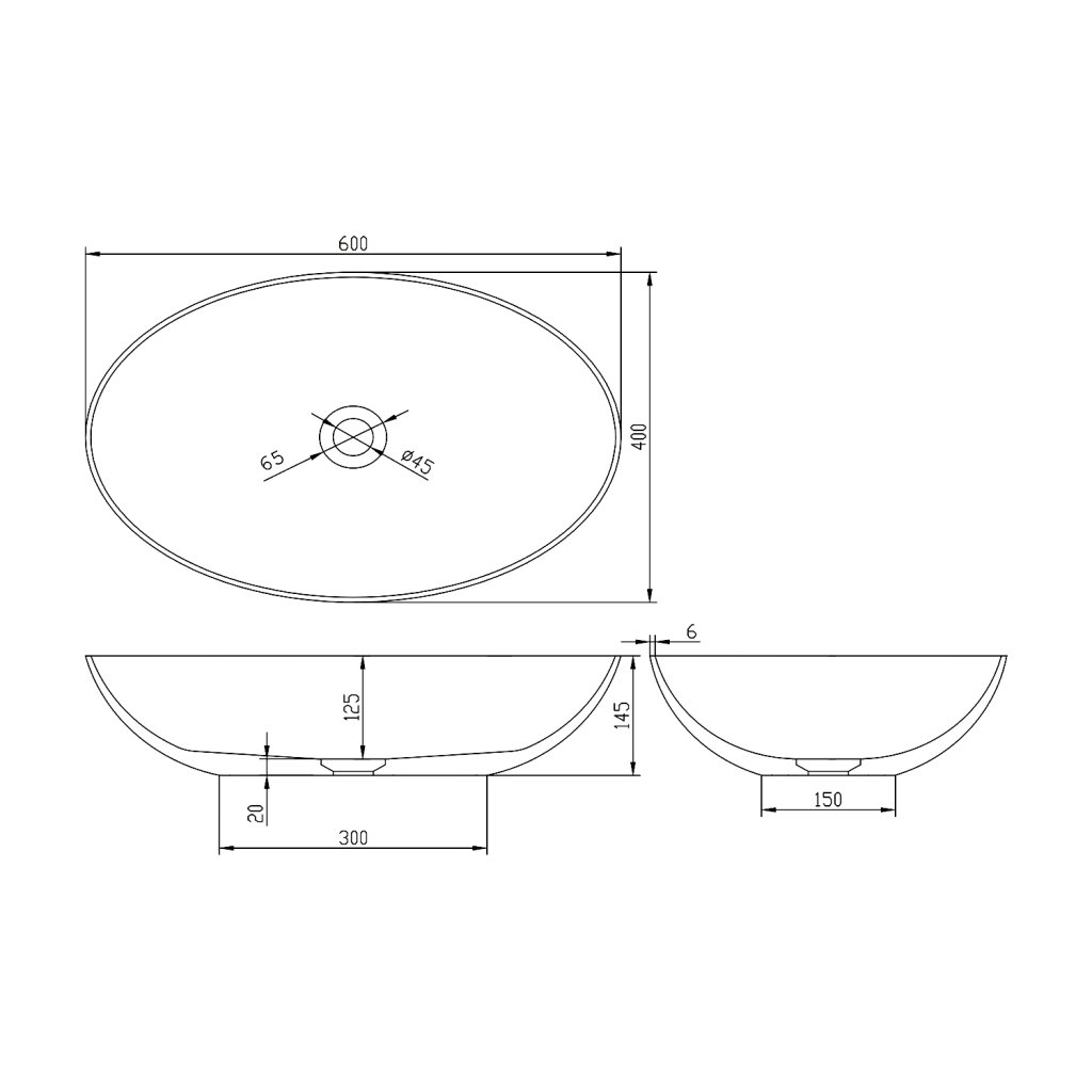 Polysan, lavoar de blat BANERA OVAL, marmura turnata, 60x40cm, alb, 14397