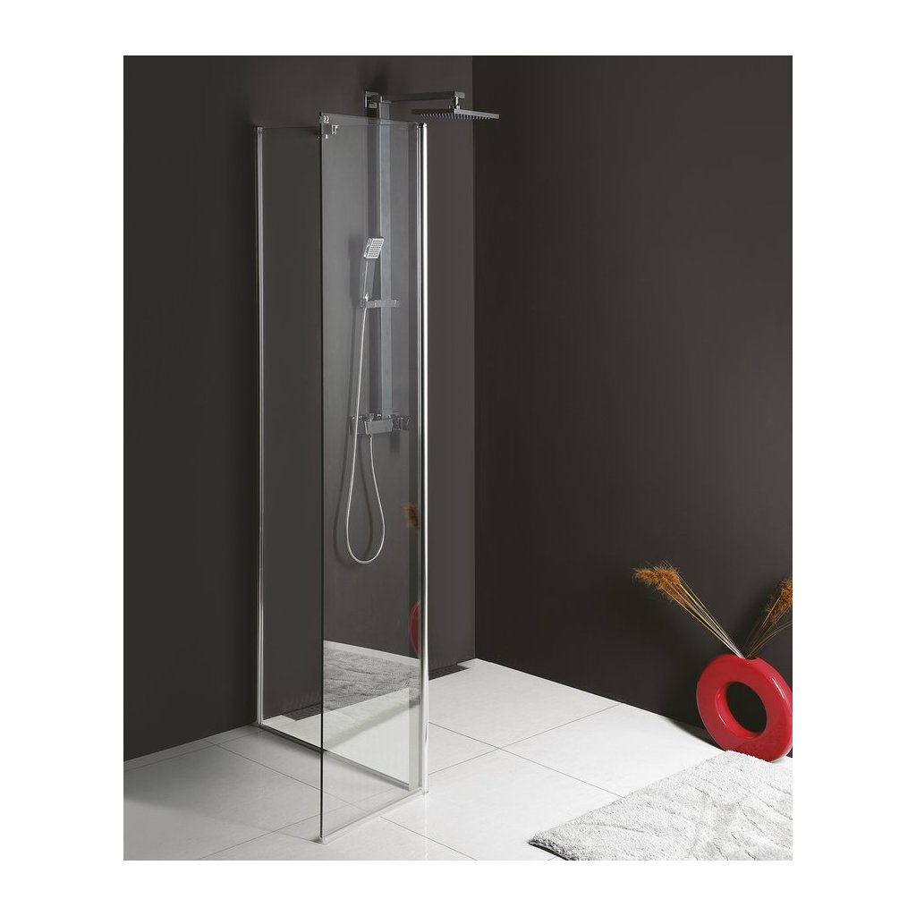 - Este un perete fix din sticla transparenta cu profil de perete cu reglaj de 0-30 mm pentru montare pe perete