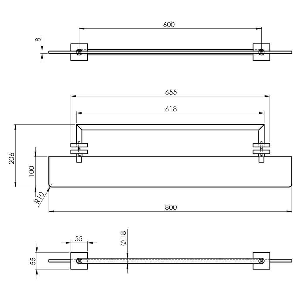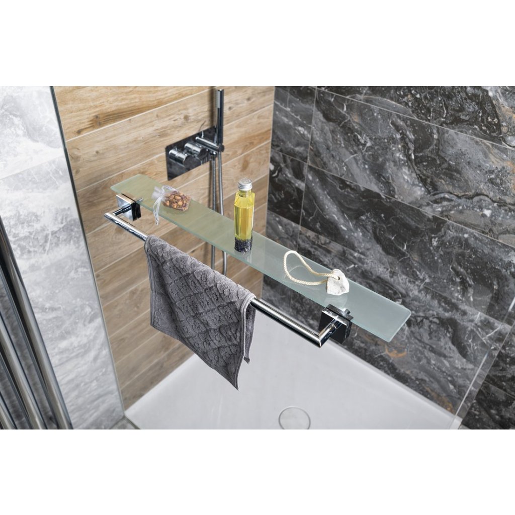 Polysan, raft X-SQUARE cu suport pentru prosoape pentru ecran de sticla, crom, XQ458