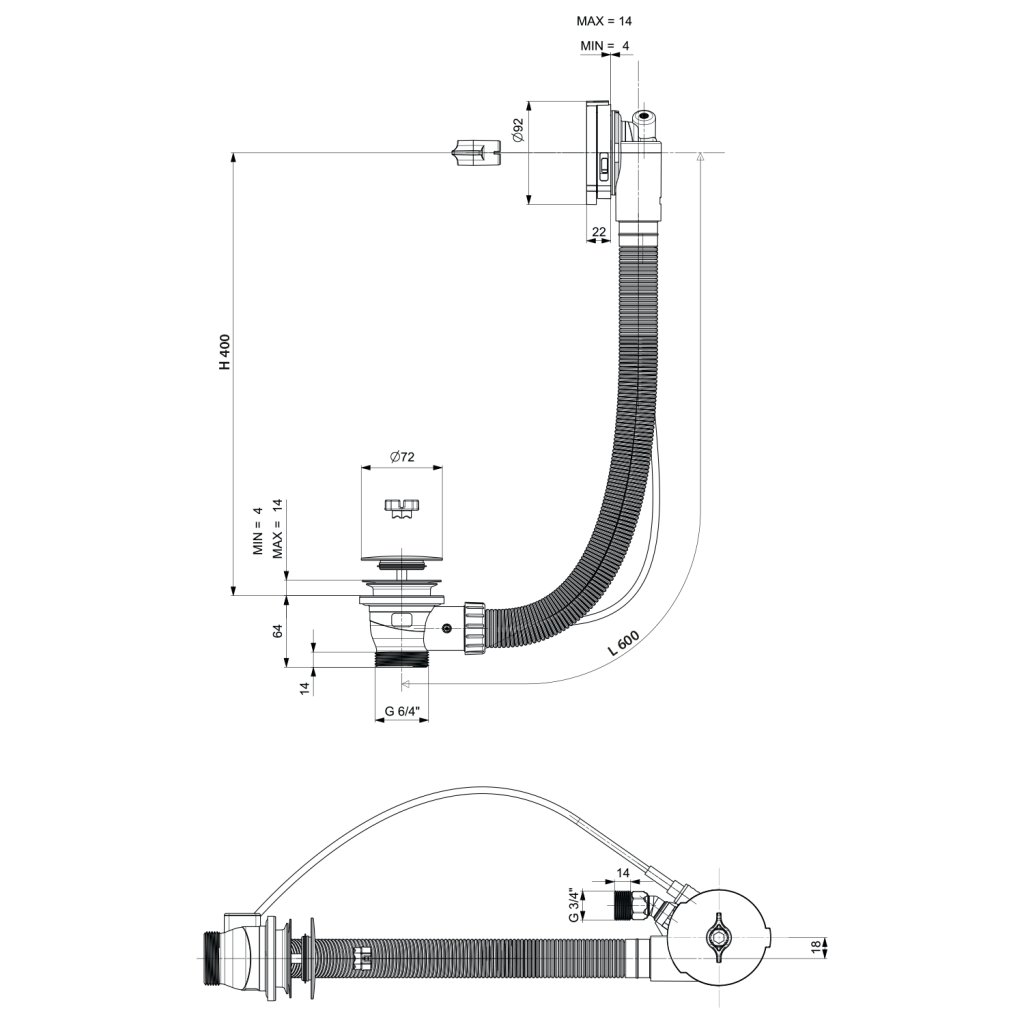 Polysan, Set de baie cu umplutură, bowden, lungime 600 mm, dop 72 mm, crom, 71851