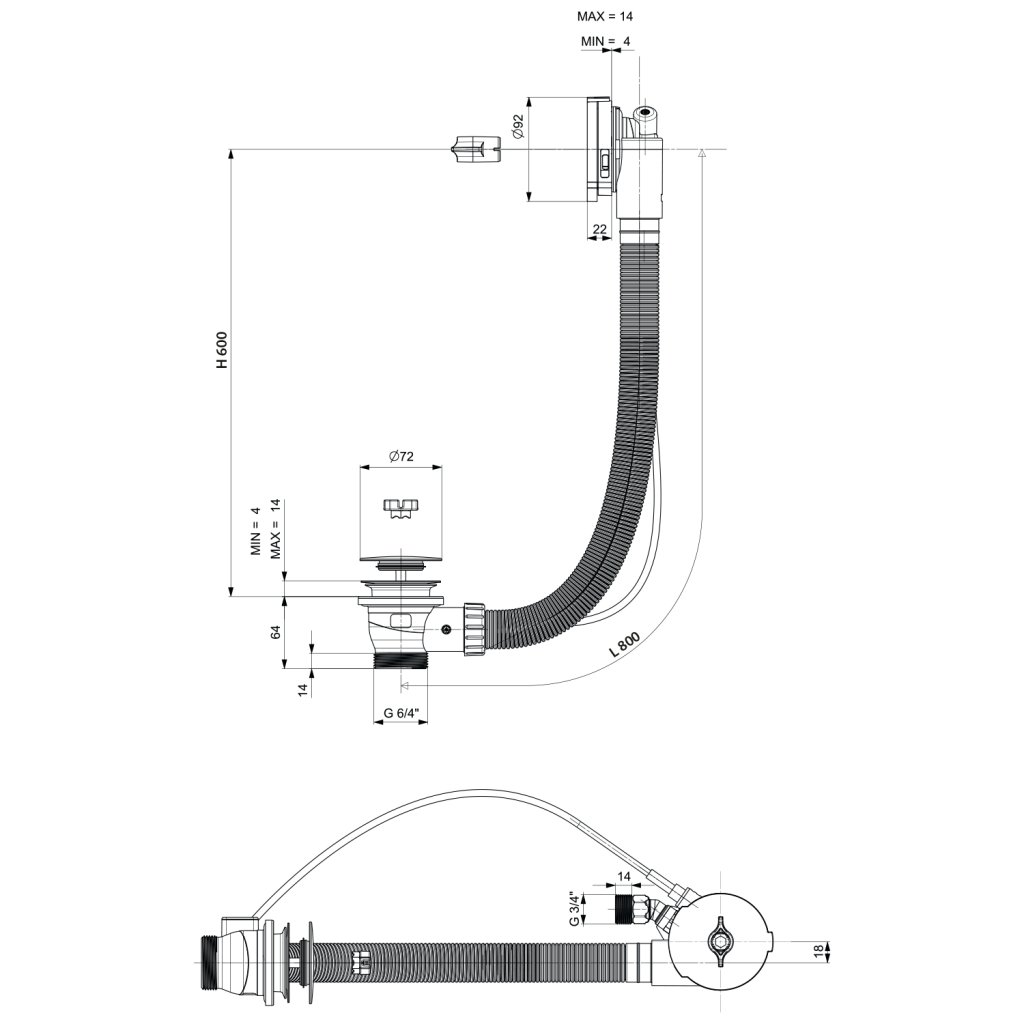 Polysan, Set de baie cu umplutură, bowden, lungime 800 mm, dop 72 mm, alb, 71853.10