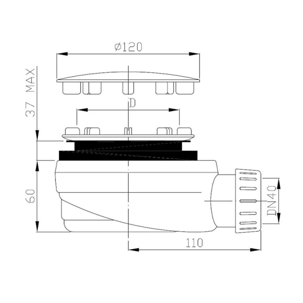 Polysan, sifon pentru cadă, diametru găuri 90 mm, DN40, joasă, capac cromat, 1716C