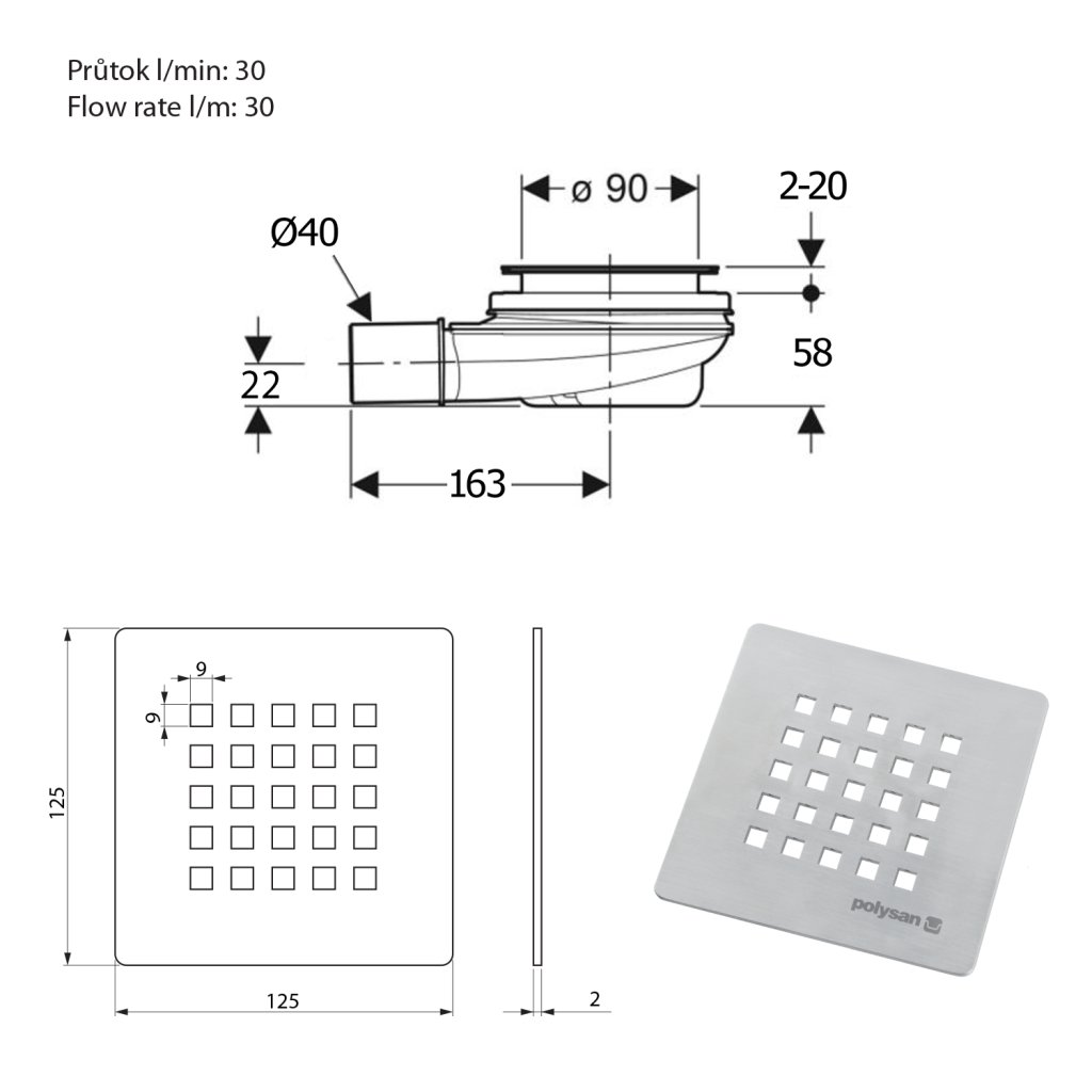 Polysan, sifon pentru cada TRENECA, diametru 90mm, DN40, capac bej mat, 84999.81