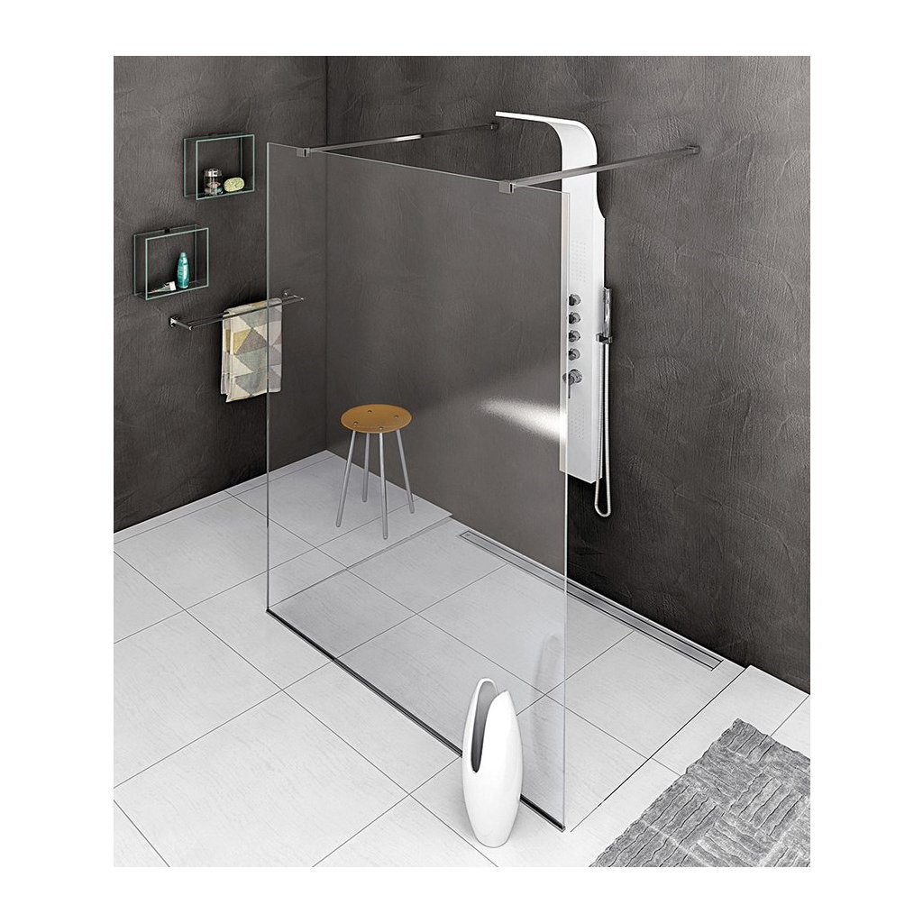 Conceptul de paravan de duș modular oferă module de sticlă cu profile pentru asamblare ușoară. Partea inferioară a geamului este echipată cu un profil de aluminiu, care conferă ecranelor un aspect elegant, o etanșare mai bună și facilitează manipularea și instalarea. Dupa dimensiunile ochelarilor este intotdeauna necesara achizitionarea suportului necesar pentru a asigura stabilitatea ecranului. Luptele sunt din oțel inoxidabil și pot fi scurtate după dorință, tăietura este ascunsă în părțile de capăt (cu excepția colțurilor, care nu pot fi reglate).