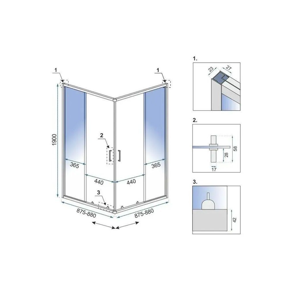 | Tip: | Rohový - 2-stranný, posuvné dvere |