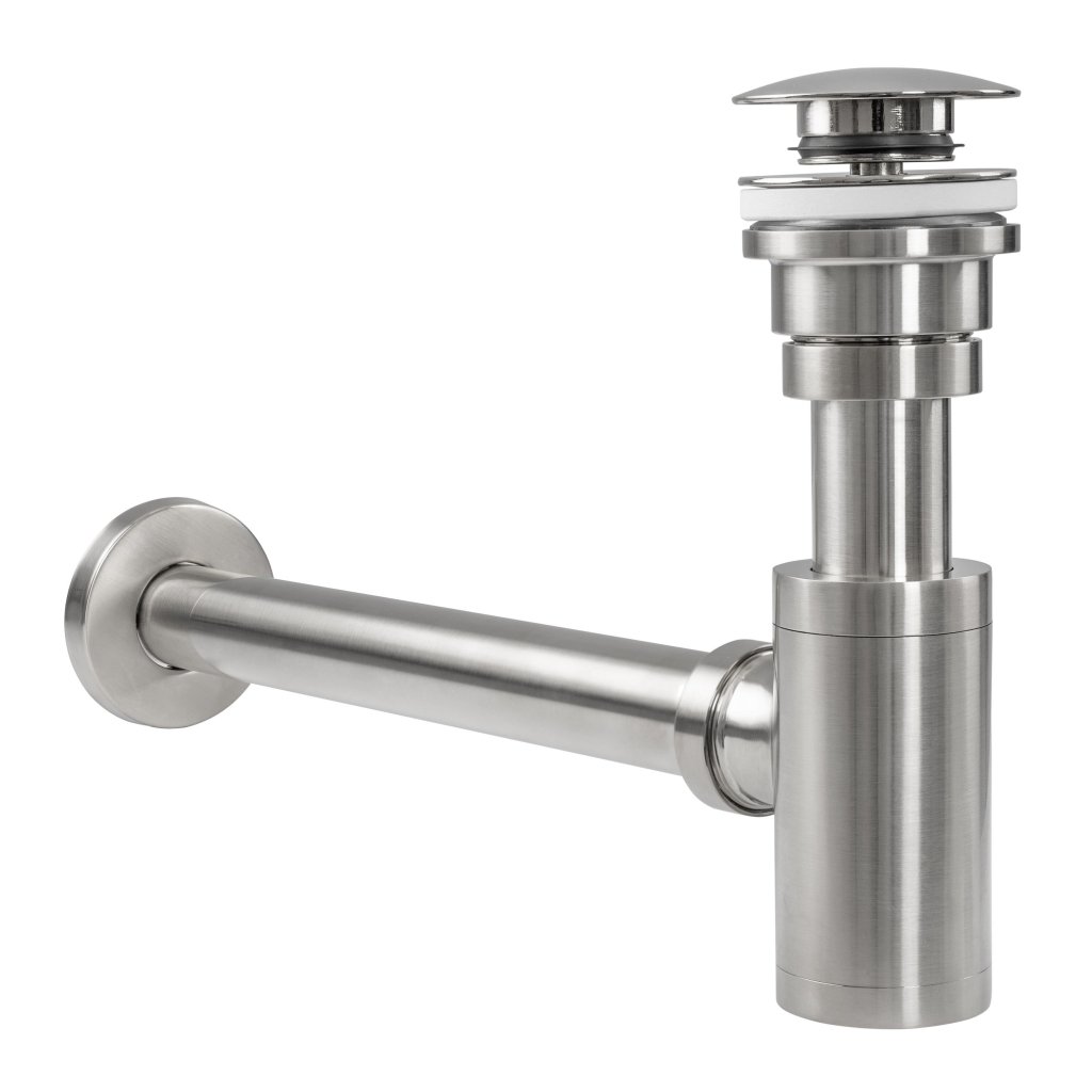 Rea, sifon universal pentru chiuvetă + dop de scurgere universal tip ClickClack, oțel, REA-A4400