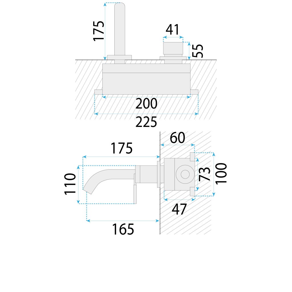 Rea Argon, robinet lavoar ascuns + sistem de montare BOX, auriu lucios, REA-B7809