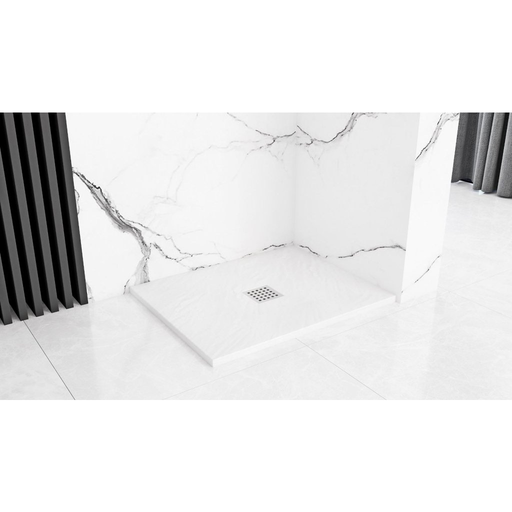 Rea Black Rock, cadă de duș din conglomerat 100x80x3,5 cm, alb, REA-K5581