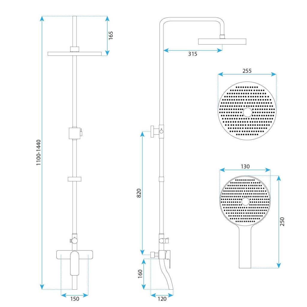 - Inaltime reglabila a coloanei de dus: max 1400 mm