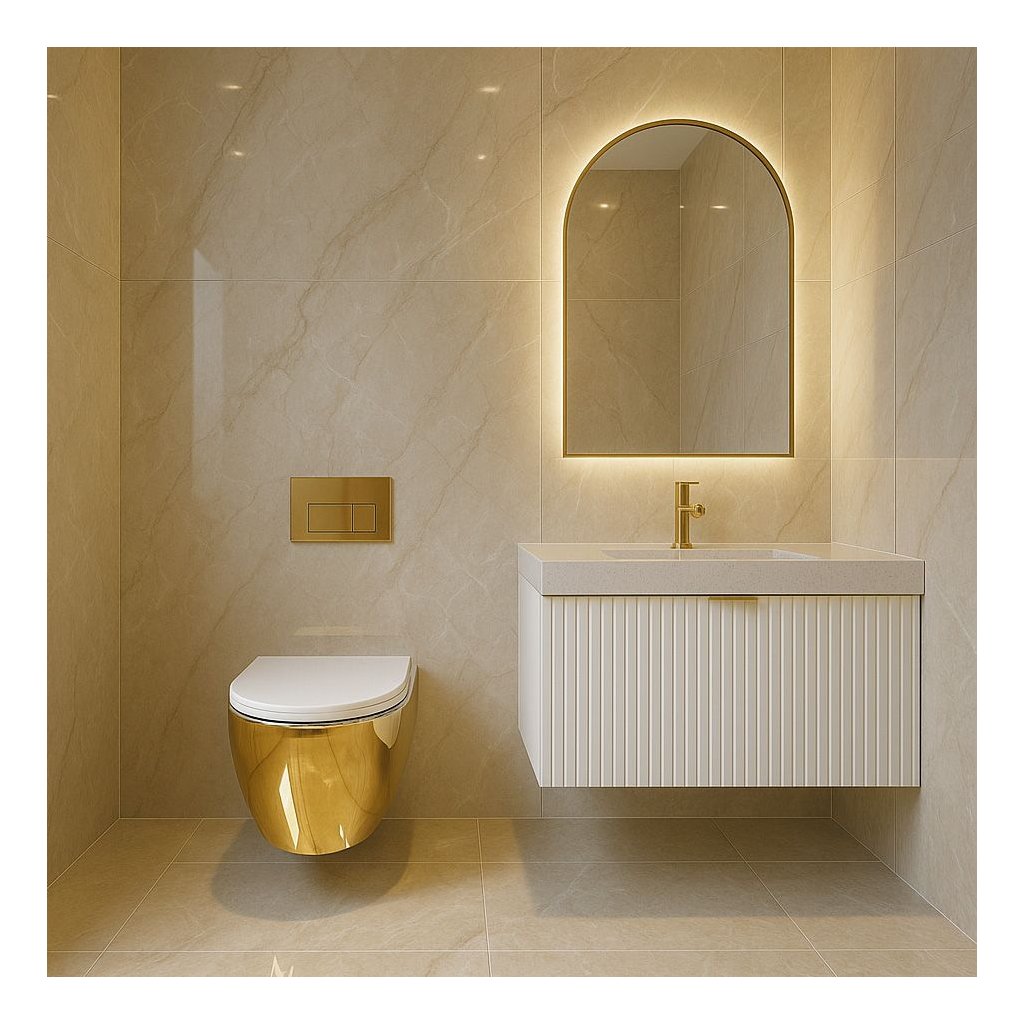 Rea Carlo Mini Tornado NF, vas WC suspendat 490x365x350mm + capac WC, alb-auriu lucios, REA-C6808