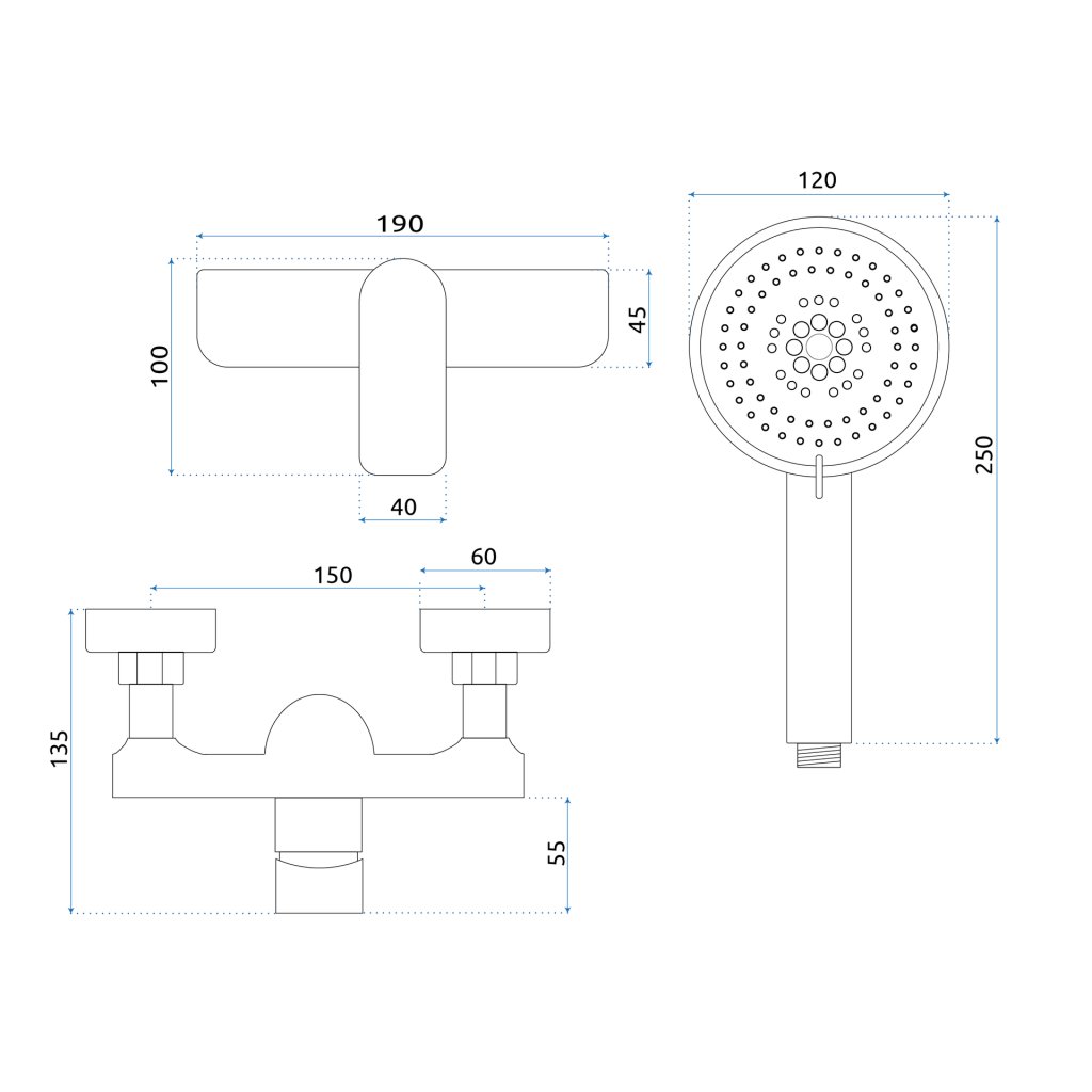 - Setul include: robinet de cada, furtun de dus 150 cm, cap de dus, console de montare, capace
