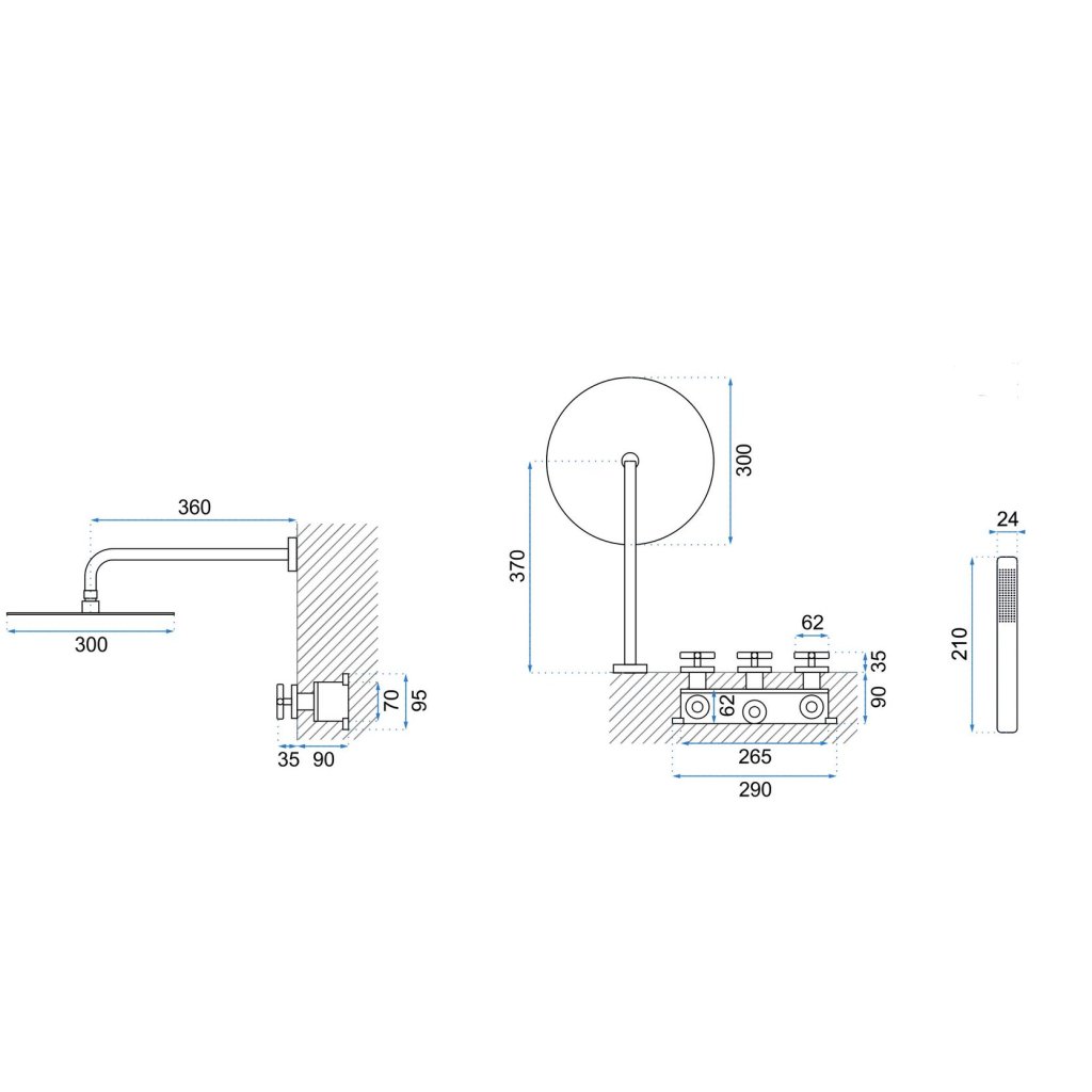 Cap de 300 mm, cutie, suport pentru duș manual cu sursă de alimentare