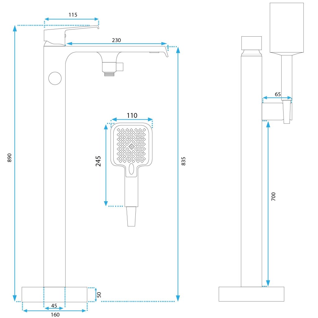 - Dimensiuni cap de duș de mână: 24,5 x 11 cm