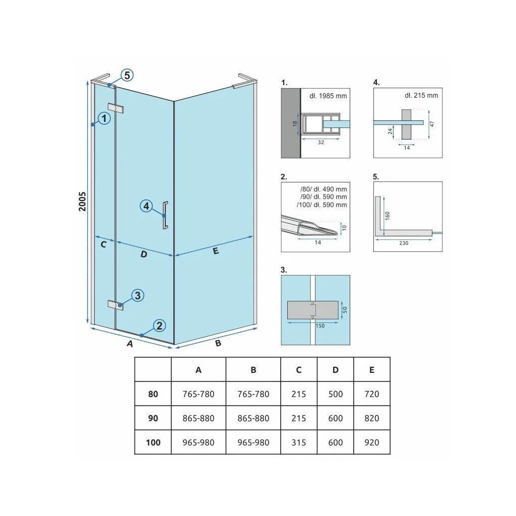 - Scop: pentru combinare cu ușile de duș din seria HUGO