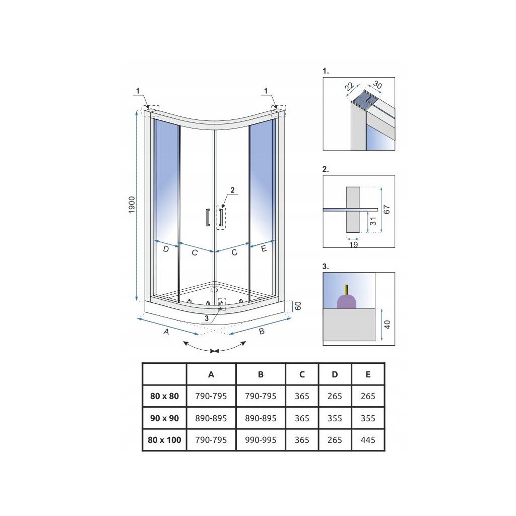 | Tip: | Colțar – 2 laturi, uși glisante |