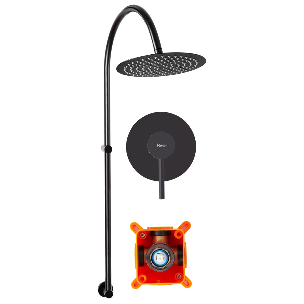 Rea Lugano - Set de duș ascuns + cutie P9301 - complet, negru mat, REA-P9301